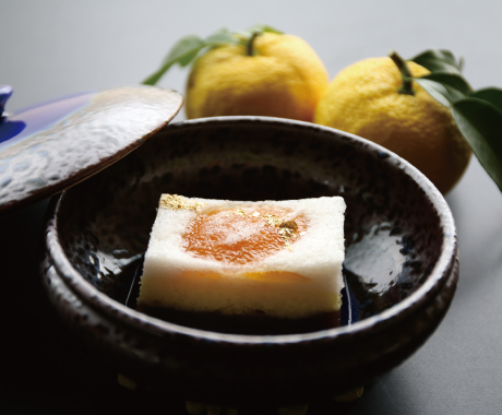 茜庵は創業以来ずっと北川村の第一人者、松崎 盛さんのお手製柚子を使用。